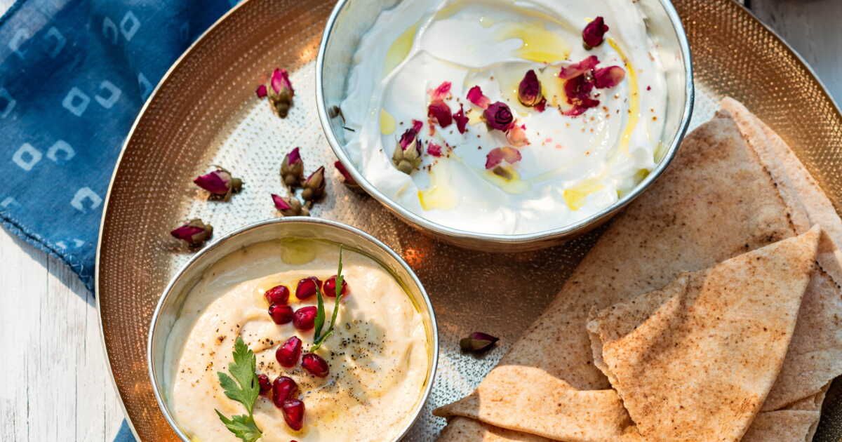 Le labné, ce yaourt égoutté crémeux, est un accompagnement parfait pour le houmous. Pour le préparer, prenez 500 g de yaourt nature et mélangez-le avec une pincée de sel. Posez un torchon propre sur un tamis au-dessus d'un bol, puis versez le mélange. Laissez égoutter au réfrigérateur pendant au moins 12 heures. Servez-le avec un filet d'huile d'olive et des herbes fraîches pour une touche supplémentaire.
