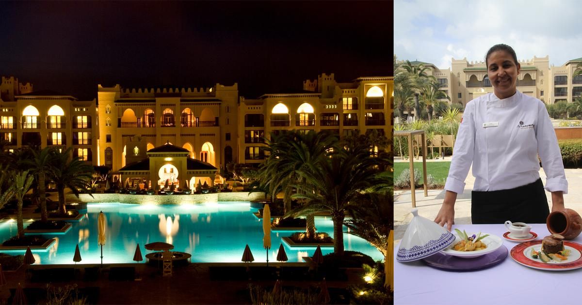 La chef. - Laila Hassouna, à la tête des cuisines du Morjana depuis son ouverture, gère avec brio une brigade majoritairement masculine. Cette cheffe dans la quarantaine, reconnue pour son expertise et son charisme, revisite les recettes traditionnelles avec créativité. Spécialiste du couscous, elle propose une semoule légère et aérienne, fruit de son apprentissage aux côtés de sa mère. Son approche empathique et ses talents culinaires en font une figure emblématique de la gastronomie marocaine.