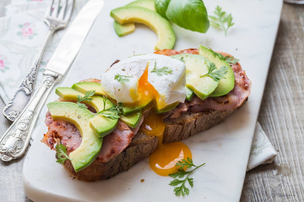 - Réchauffez les œufs en les plongeant 30 secondes dans de l'eau bouillante. Dressez le toast avec bacon, avocat et œuf poché. Assaisonnez avec sel, poivre et coriandre fraîche.