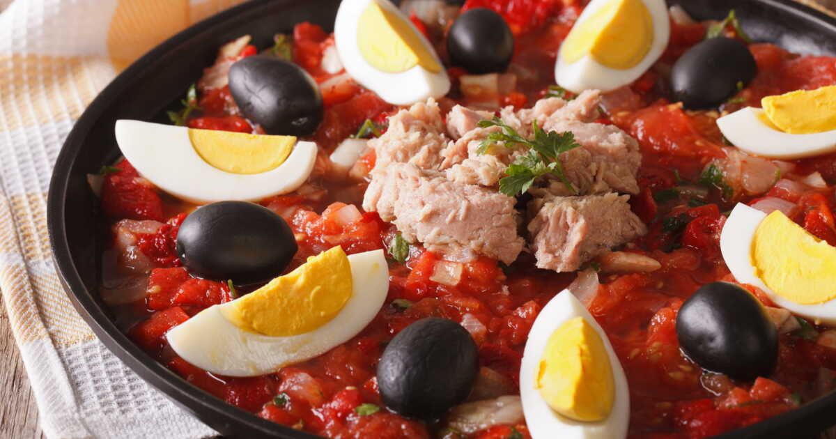 Ajoutez des œufs durs coupés en quartiers, du thon émietté et quelques olives. Assaisonnez avec un bon filet d’huile d’olive, salez et poivrez avant de servir.