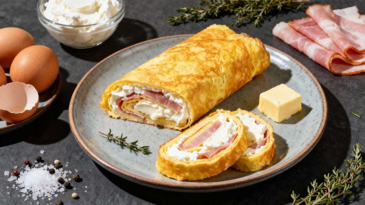 Cette omelette roulée au fromage frais et jambon est un plaisir à préparer et à déguster. Sa combinaison de textures et de saveurs en fait un plat idéal pour un déjeuner léger ou un dîner presque instantané.