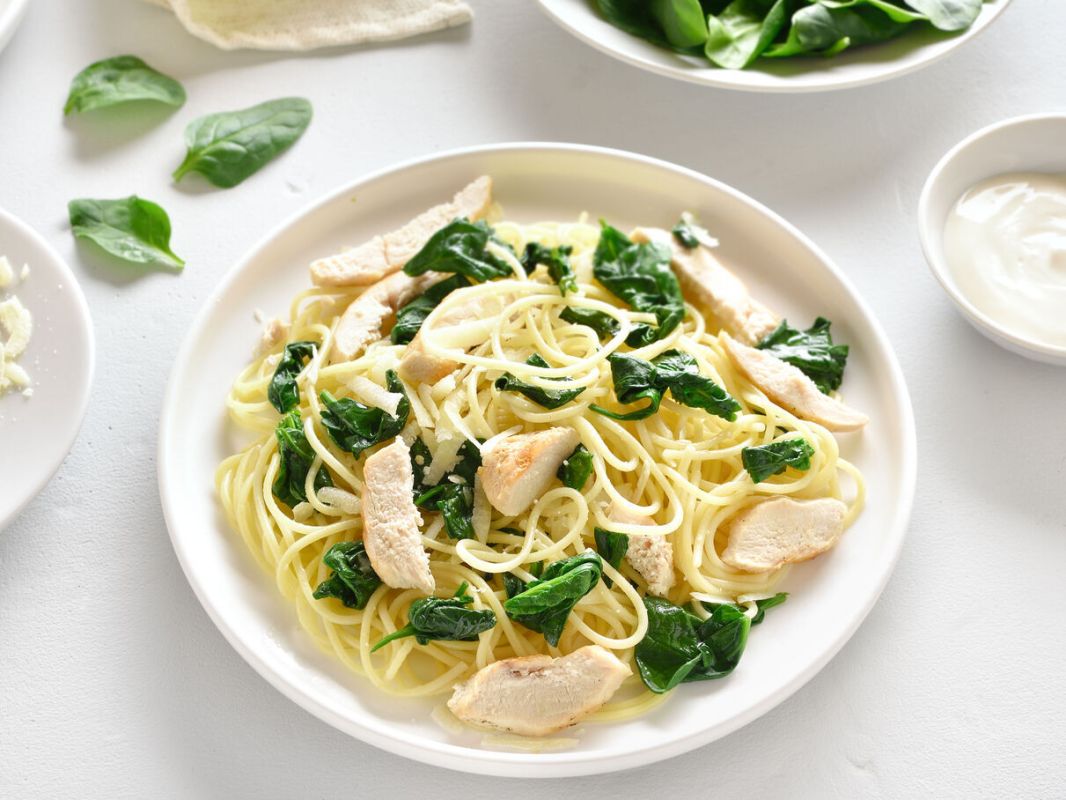 Pâtes au poulet et aux épinards, au citron et au parmesan