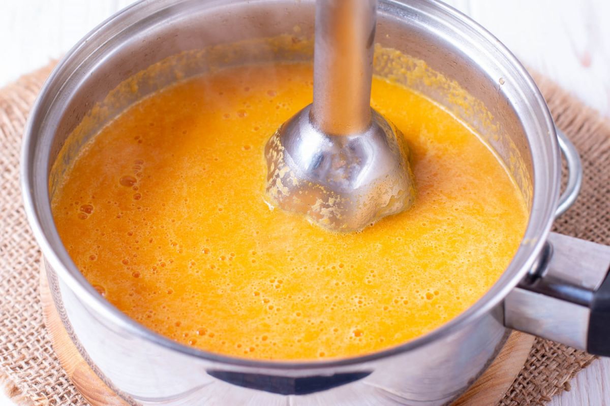 - Quand les patates douces sont tendres, passez à l'étape suivante : le mixage. N'oubliez pas l'astuce du chef : retirez quelques louches de bouillon avant de mixer pour ajuster ensuite la texture. Ajoutez le bouillon progressivement selon votre préférence, pour obtenir une consistance idéale. “Ainsi, vous êtes sûr de réussir chaque fois”, conclut le chef.
