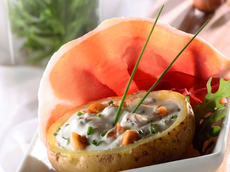Simple à réaliser, cette recette audacieuse met en lumière les saveurs du jambon Serrano, accentuées par la douce touche de noisette. Préparez un éventail de tranches de jambon, accompagnées de pommes de terre délicatement farcies. Ce plat coloré et savoureux saura séduire vos invités.