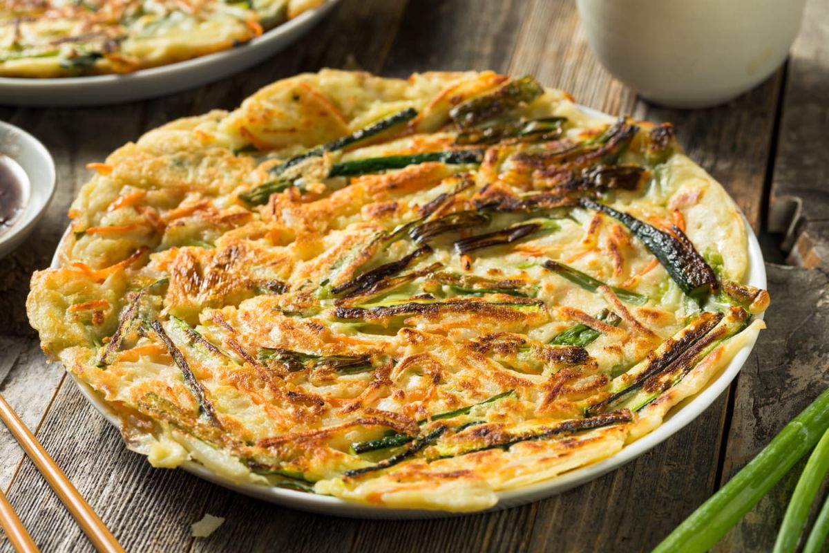 Embarquez pour la Corée avec cette galette pajeon, mêlant les plaisirs d'une omelette et d'une crêpe. Plongez dans cette recette végétale emblématique de la cuisine coréenne.