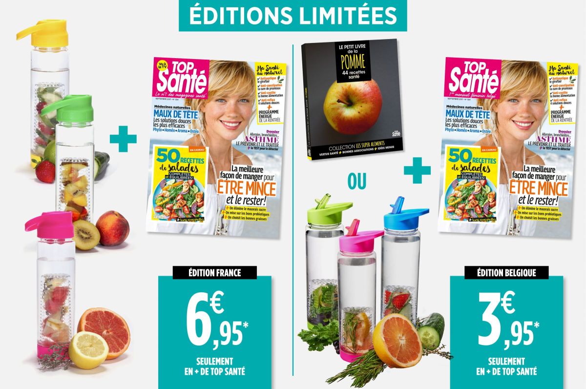 En vente avec le numéro 324 de Top Santé pour 3,95 € en édition limitée. Le mois prochain, ne manquez pas notre bouteille isotherme et le hors-série sur les huiles essentielles.