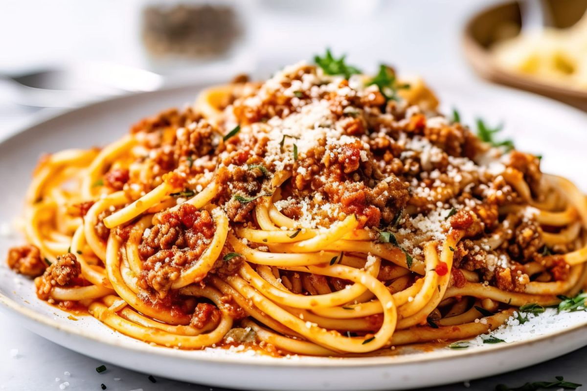 Un ingrédient secret : en plus du bœuf haché classique, le guanciale, charcuterie traditionnelle italienne issue des joues de porc, apporte une richesse inégalée à la sauce.