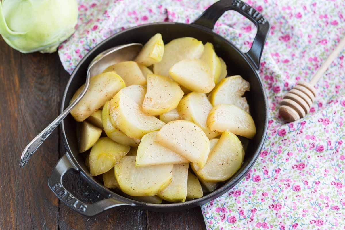 - Épluchez les choux rave et coupez-les en tranches d'environ 1 cm d'épaisseur.
